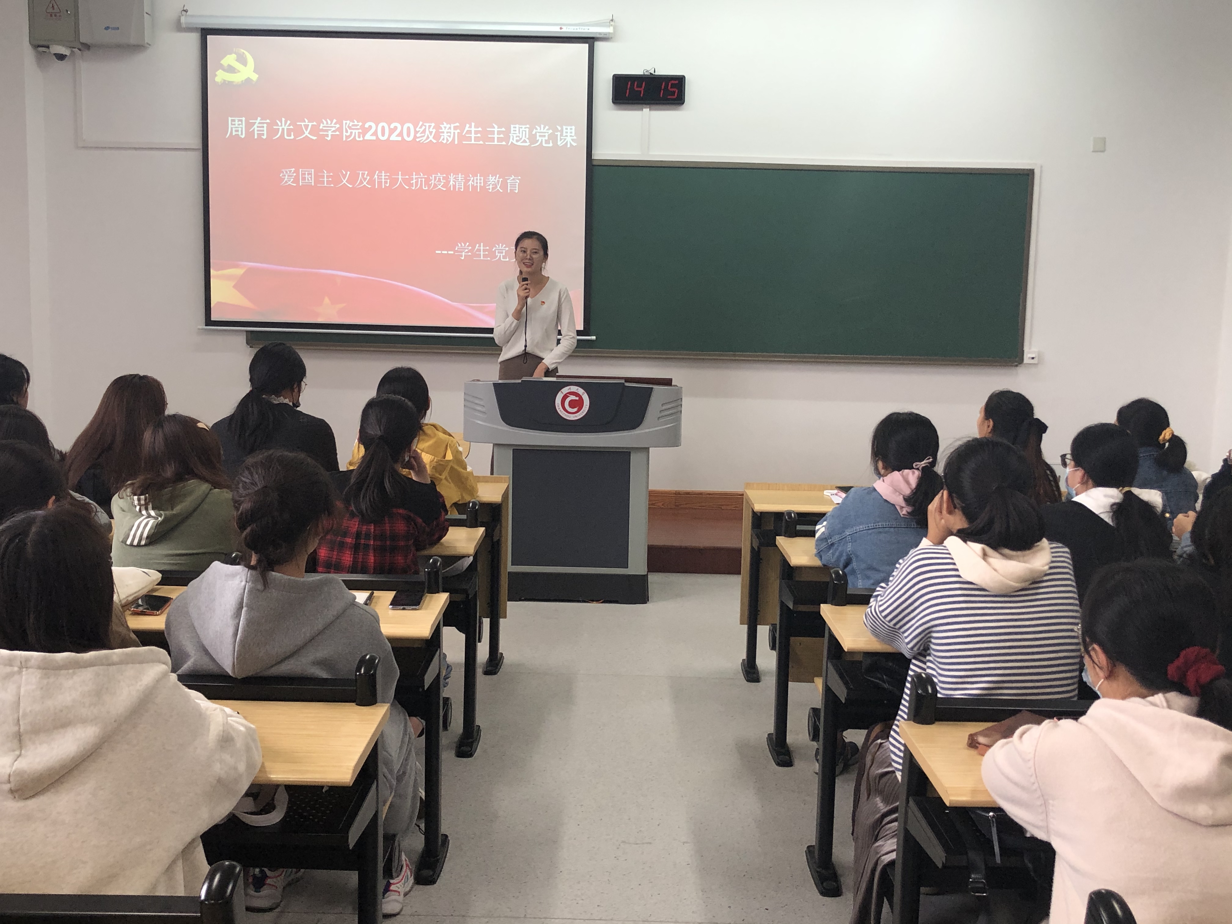 近日,在新生入学集中教育之际,missav 学生党支部在X218为2020级新生集中开设了入学后的第一堂主题党课,爱国主义及伟大抗疫精神教育。主题教育活动由missav 学生党支部书记杜焕主持。