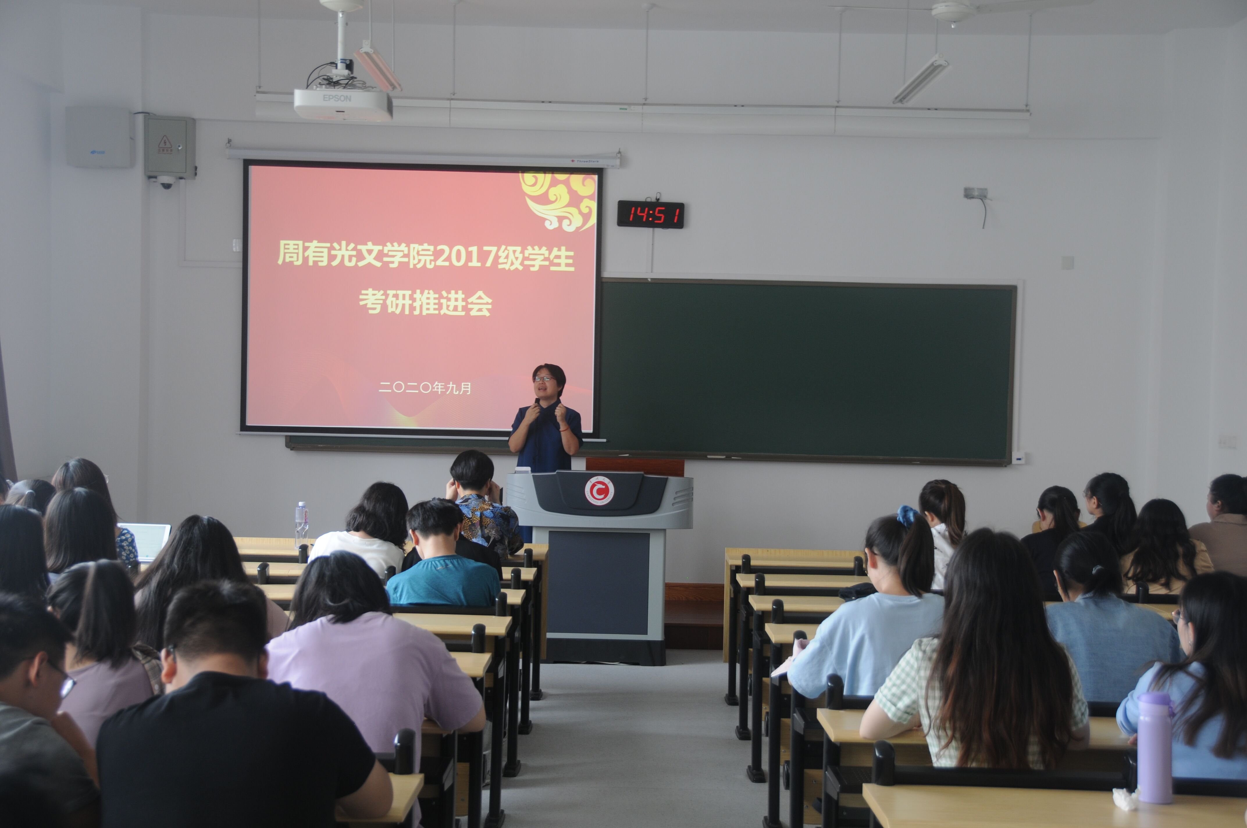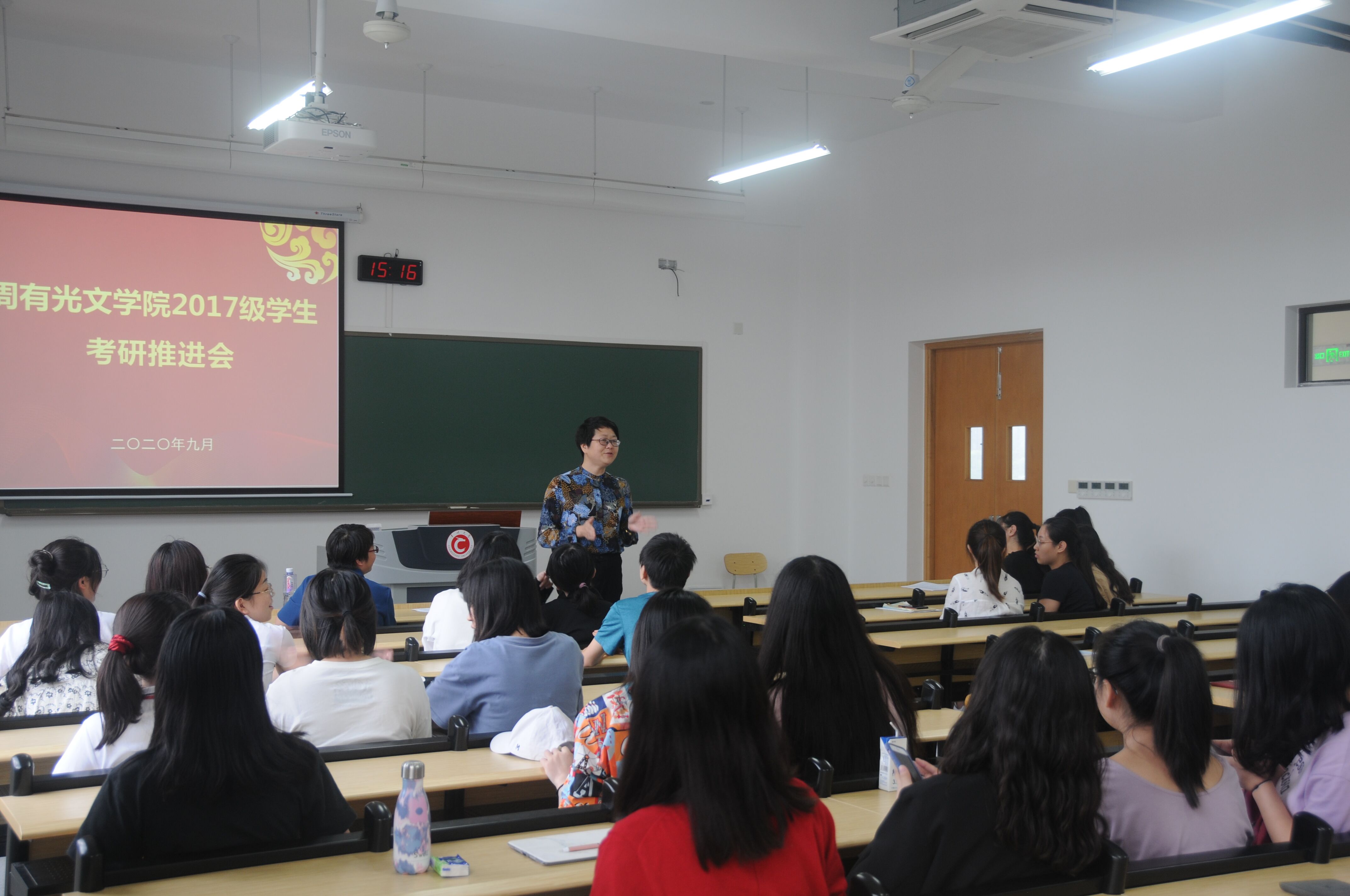 本科生考研升学作为高质量人才培养和高质量毕业生就业的重要标志,受到全校上下的广泛重视。9月16日下午,missav 在missav 西太湖校区立德楼202教室组织开展2017级学生考研专项推进会。学院近70位拟报考研究生的学生、校心理健康教育中心蔡亚敏老师、院党总支书记焦洁庆、副院长葛金华参加了会议。