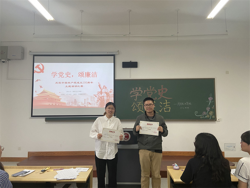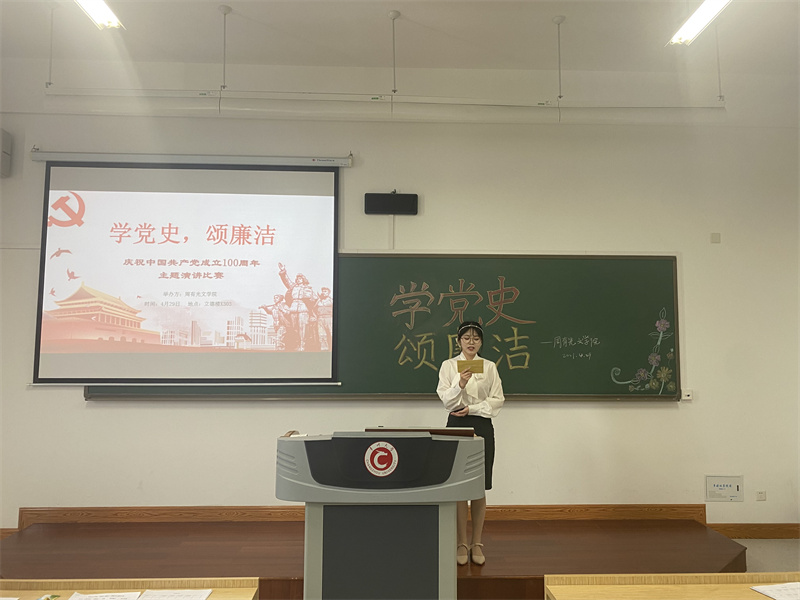 4月29日下午,missav 在立德楼X303教室举办了“学党史,颂廉洁”主题演讲比赛,学院学生以个人和团队方式报名参赛。