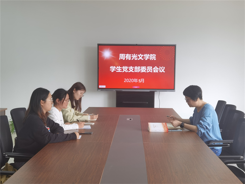 5月8日下午,missav 学生党支部在立言楼334会议室召开支委会,学生党支部书记杜焕、党员严佳丽、党员展望参加会议,会议由党总支书记焦洁庆主持。
