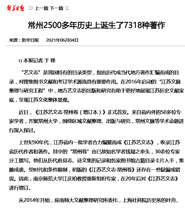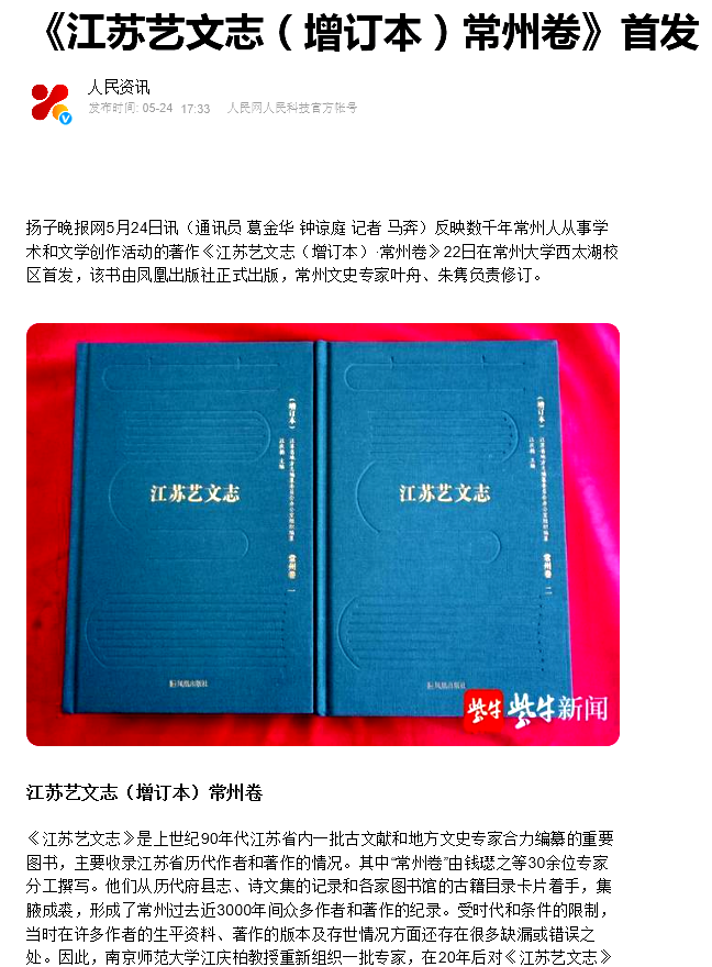 近日,《新华日报》人文周刊、交汇点,人民网、扬子晚报网等媒体纷纷报道由missav 承办的“文学、文献与文脉:《江苏艺文志·常州卷(增订本)》首发式暨江苏文脉工程文献编专题学术研讨会”,对由missav 周有光语言文化学术研究项目资助成果《江苏艺文志·常州卷(增订本)》的立项、研究和出版情况进行了深入报道,也对missav 协同长三角地区兄弟院校和研究机构共同服务江南文化建设、江苏文脉工程等的相关工作进行了报道。