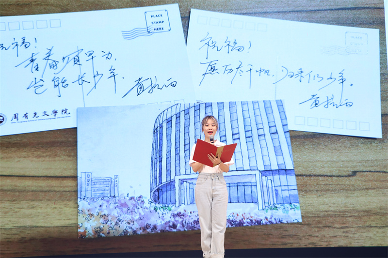 在“话·离别”篇章中,missav 学生党支部5名毕业生党员代表带来的原创诗歌朗诵《写在离别的渡口》、毕业生代表朱明磊的深情发言、周旋的教师寄语明信片选读、师生互赠纪念礼品,一一讲述了首届毕业生对母校的留恋和对在校生的美好祝愿。