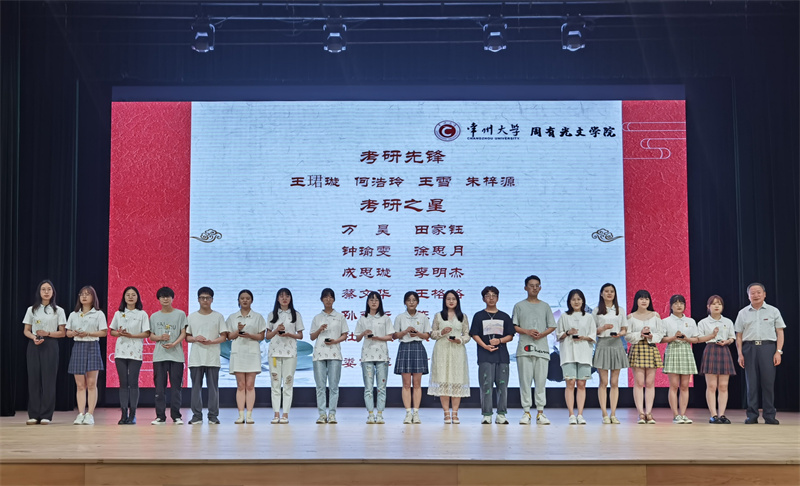 在“忆·峥嵘”篇章中,院长助理王丹宣读“2021届优秀毕业生标兵、优秀毕业生、优秀毕业生宿舍、考研先锋、考研之星、选调生先锋、考编先锋”表彰决定,院长葛彦东、副院长葛金华分别为以上同学颁发奖杯,以祝贺学院首届毕业生在考研、考公、考编、就业等领域取得的丰硕成果,也激励其他年级学生奋勇争先,再创新辉煌。