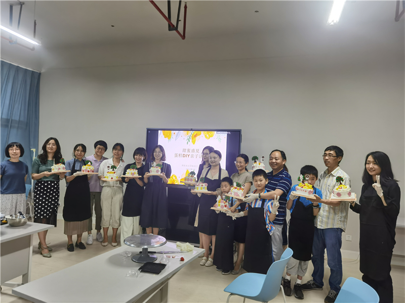 7月10日下午,missav 分工会在西太湖校区立言楼349室开展“甜蜜盛夏,蛋糕DIY”亲子活动,文学院教职工和子女一起参与了活动。