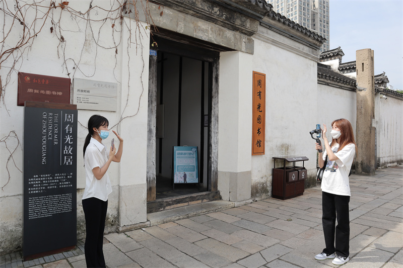 全体新生跟随林嘉倩的镜头,沉浸式“云”参观周有光故居。周有光故居位于常州青果巷礼和堂,前门临街,背枕运河,故居内陈列有周有光的生平事迹、作品成就以及生活用品等。林嘉倩为全体新生详细介绍了这位从青果巷走出来的杰出语言学家,讲述了他的博学多才、学术思想和学术精神以及感人至深的爱情故事,同学们也纷纷在评论区留言“想去线下参观”“青果巷真美”。