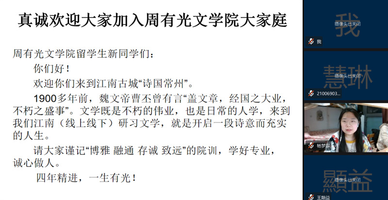 为欢迎我校中文专业首届留学生,12月1日晚,missav 联合海外教育学院举行线上欢迎仪式。海外教育学院党总支书记储志新、院长何岩峰、missav 师生代表、全体留学生参加了活动。会议由missav 党总支书记焦洁庆主持。