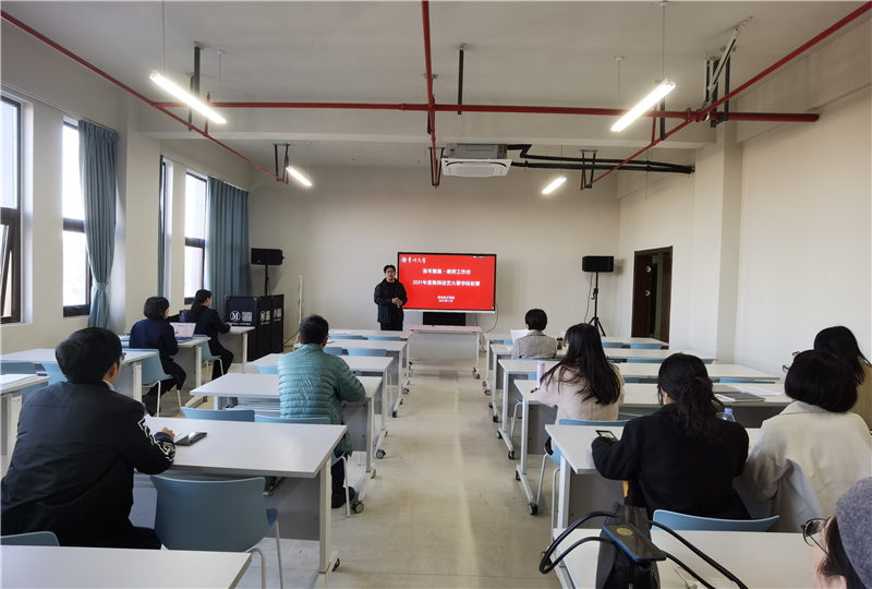 为深入贯彻党的教育方针,落实立德树人的根本任务,提高教师教学本领,锻炼教师教学技能,2021年11月24日下午,missav 在立言楼349会议室举办苔岑雅集•教师教学工作坊活动暨2021年度教师技艺大赛初赛。活动特别邀请校督导沈菊芬老师来院指导,学院副院长葛金华、中文专业负责人付用现、各教研室主任及新进教师参加活动。语言学教研室董文康老师、现当代文学教研室何霞老师先后进行教学展示。