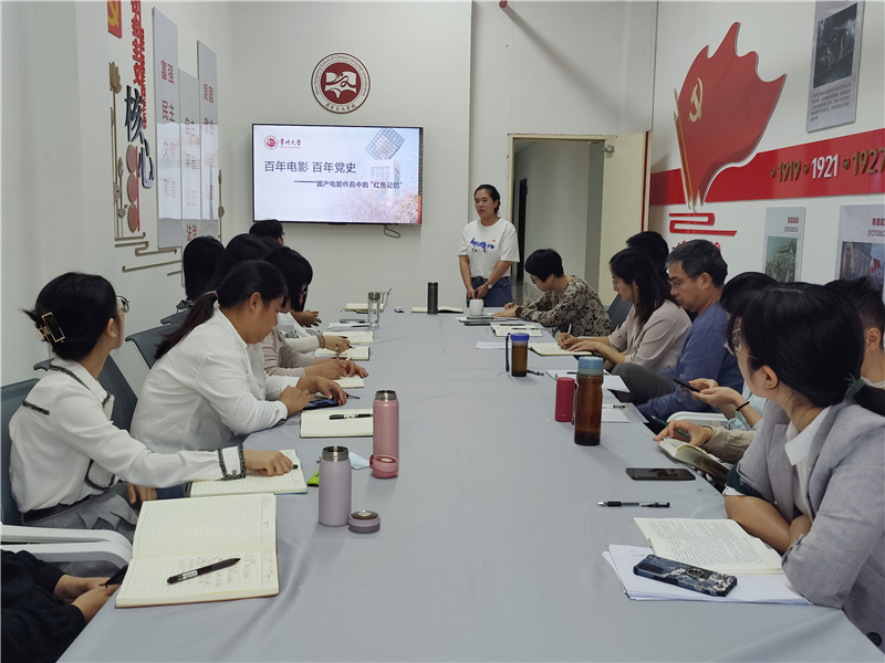 9月21日下午1:00,missav 分工会在立言楼227室举办了“百年电影 百年党史”专题学习活动。活动由党支部书记付用现主持,由青年教师王春晓主讲。院党总支书记焦洁庆、院长葛金华以及部分教工参与了学习和研讨。