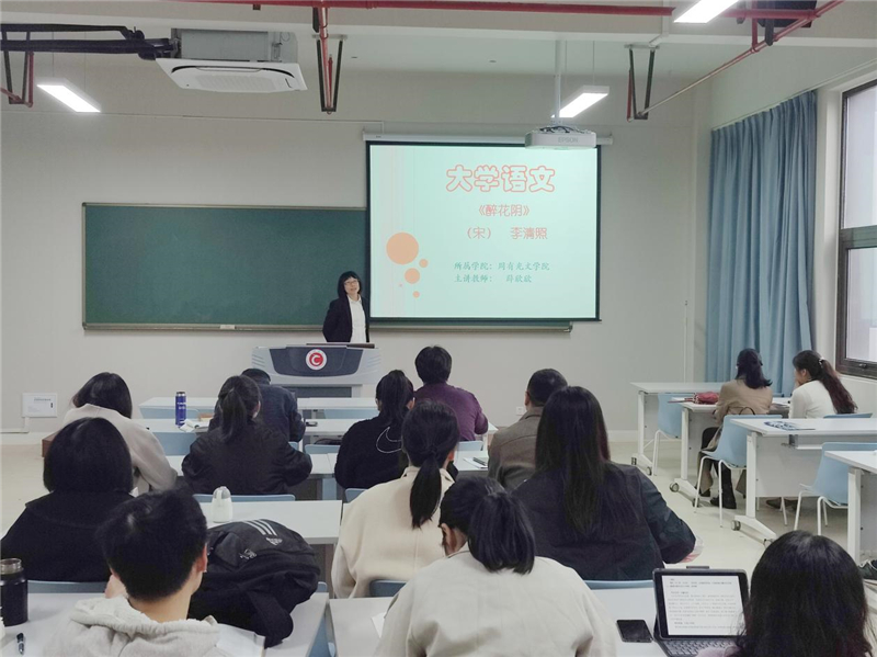 活动中,王海峰老师就《崇高美》主题进行讲授,对“崇高”的概念起源、发展脉络、美学风格和艺术表现做了详细阐述,并且针对崇高对象的特征,以板书+举例的方式进行演示。随后,王海峰老师就《OBE如何融合到美学课程》主题进行讲演。薛欣欣老师以《醉花阴》为题,从器物文化和精神文化两个方面介绍了作品中展现的宋代社会情境,并概述了OBE教学理念在《大学语文》课程中的应用。两位老师讲演内容逻辑清晰,层次分明,将文学概念及教学理念充分形象化和生动化。