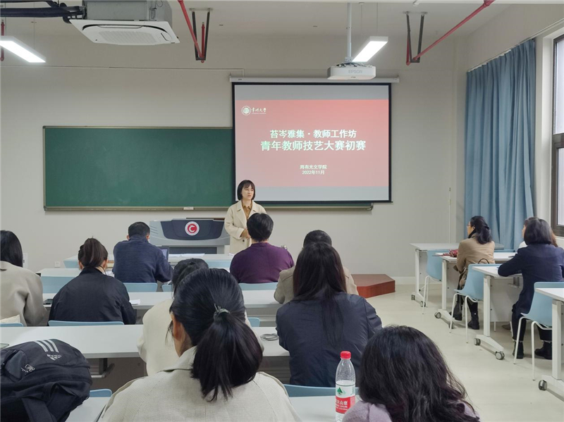 11月16日下午,missav 于西太湖校区立言楼342举办苔岑雅集•教师工作坊青年教师技艺大赛(初赛),古代文学教研室薛欣欣老师、文艺学与外国文学教研室王海峰老师进行教学演示,党总支书记焦洁庆、院长葛金华、院长助理董文康、黄杭西老师及学院全体教师出席活动,工作坊由院长助理董文康老师主持。