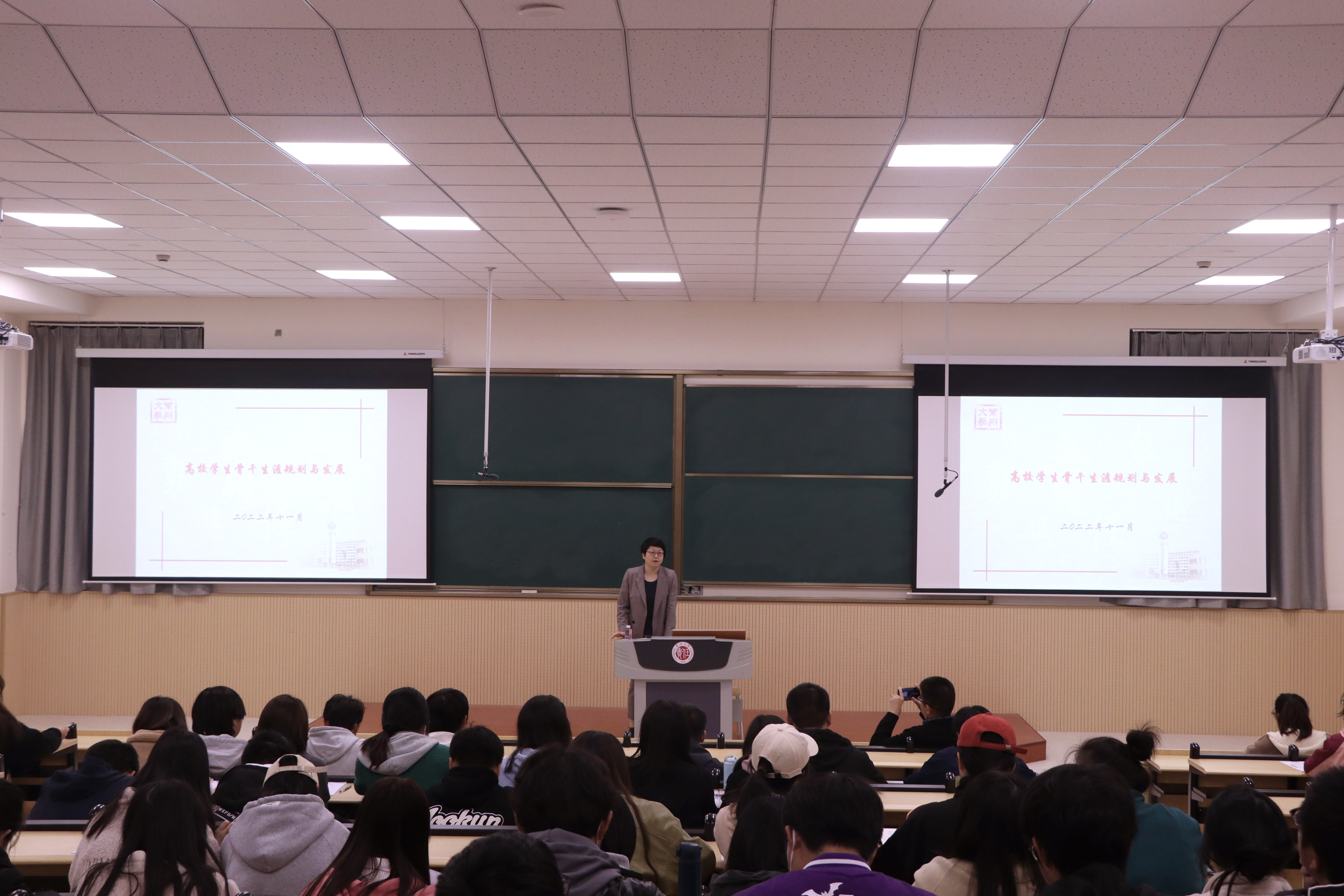 焦洁庆从生涯选择、角色定位和生涯发展三个主题导向展开讲解。她通过如何提升竞争力、定位骨干角色和全方位发展这三个问题展开讨论,引导学生明确自我,加强就业竞争力,正确处理“学生”和“骨干”之间的关系,化解角色冲突,全方位深入发展,为未来竞争铺路奠基,使自己成为既能为学生服务又能带领学生前进的骨干榜样。