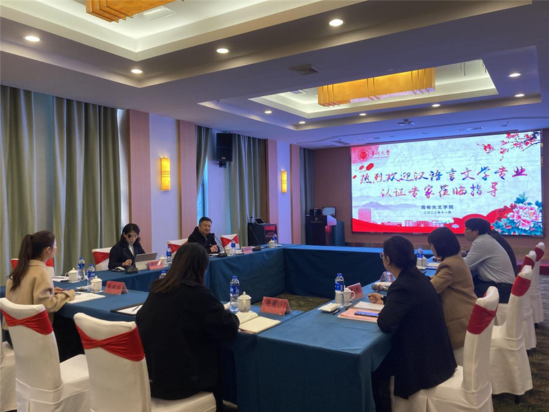 见面会上,中文系主任王丹副教授首先以“双轮驱动,四位一体:打造有特色的的专业教育”为题进行了认证汇报。她从专业概况及发展特色、专业优势及发展方向、培养模式及品牌文化等三个方面,对汉语言文学专业自评报告进行了汇报说明及补充阐释。