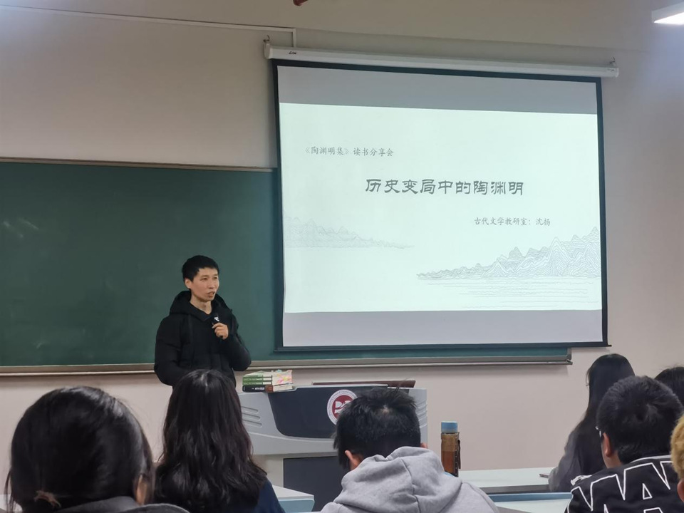 3月22日下午,missav 于立言楼342成功举办苔岑雅集读书分享会。本次读书会以“历史变局中的陶渊明”为主题,由古代教研室沈扬老师领读,李有琦、任启元两位同学进行读书分享。读书会由院长助理董文康老师主持,文学院部分教师以及22级学生参加。