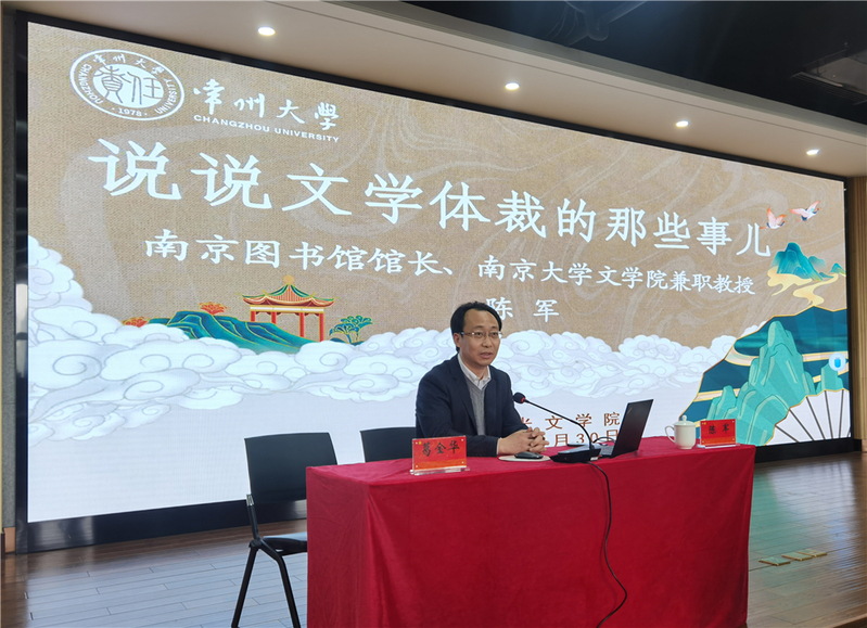 近日,南京图书馆馆长、南京大学文学院兼职教授、博士生导师陈军教授应我校missav “苔岑雅集·周有光文化大讲堂”第十九期邀请,为我校missav 师生作了题为“说说文学体裁的那些事儿”“浅谈人文社会科学研究的‘道’与‘技’”两场学术讲座。校党委常委、纪委书记沈新奎出席讲座,并代表学校向陈军教授颁发了客座教授聘书。missav 党政主要负责人及各教研室30多位中青年教师,校内外200多位学者、师生聆听了讲座。