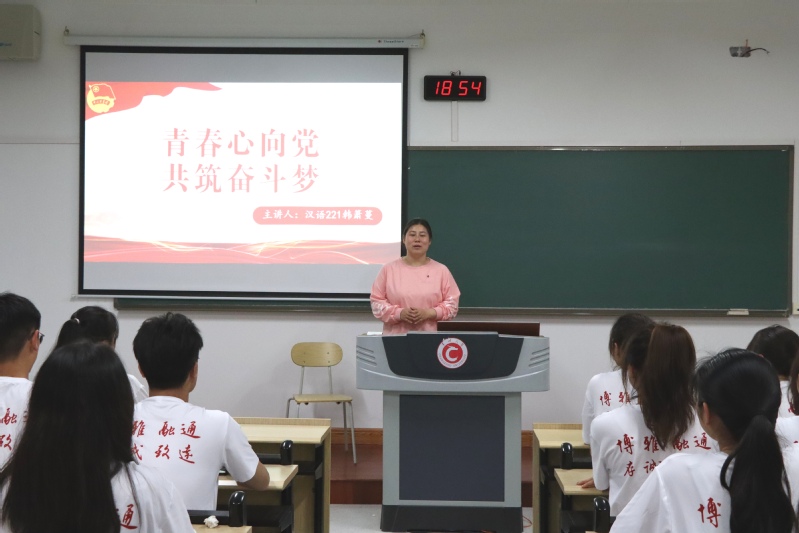 为深入学习党的二十大相关知识,4月20日晚,我院在立德楼324开展了“青年心向党,共筑奋斗梦”主题宣讲活动。本次活动由校级宣讲员汉语221班韩箫蔓主讲,院团工作负责人吕俊红和22级全体学生参与活动。