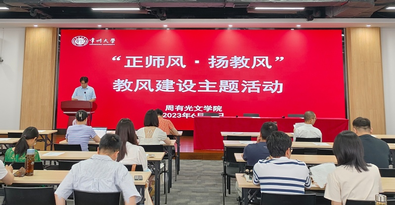 在立言楼458报告厅召开“正师风·扬教风”教风建设主题活动,专题推进师德师风及教风建设相关工作。学院党总支书记焦洁庆、院长葛金华,专业负责人付用现、系主任王丹,各教研室主任出席活动,全体教师参加活动。葛金华院长主持活动。