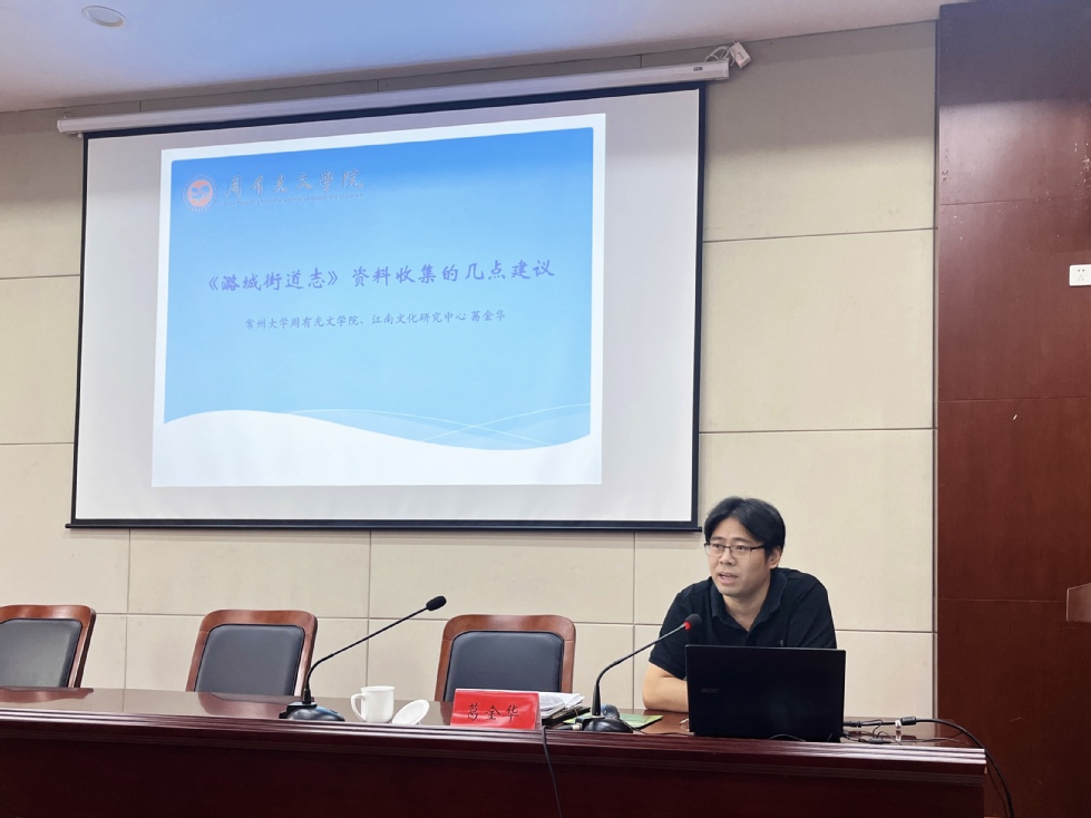 会上,常州市方志办方志处处长陈东哲作了动员讲话。他认为,潞城街道依托missav 专业团队修撰街道志,开创了本地高校与地方合作修志的先河。他强调,要充分认识街道志编纂的重大意义,做好前期调研,借鉴优秀做法,注重突出本地特色亮点,不断挖掘、保护和传承本地文化。常云峰副处长围绕什么是地方志、地方志的特性、资料搜集要求和方法等内容进行了专题辅导。葛金华院长代表《潞城街道志》修撰项目团队,就如何做好资料收集、如何开展方志修撰、如何构建校地合作新模式等内容做了专题辅导。