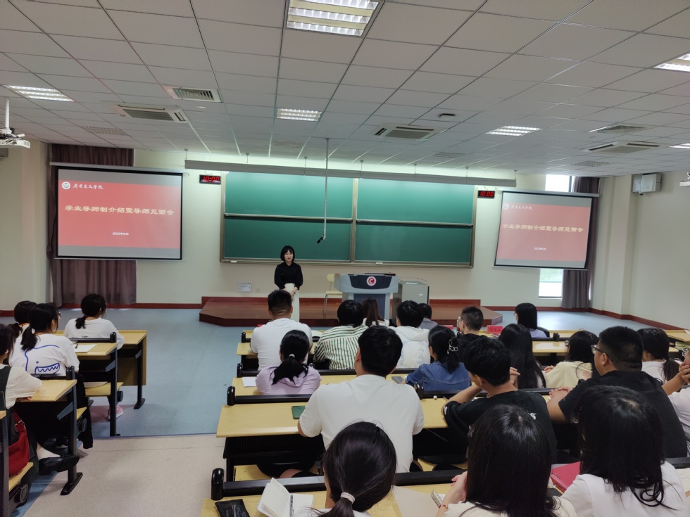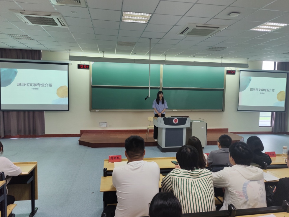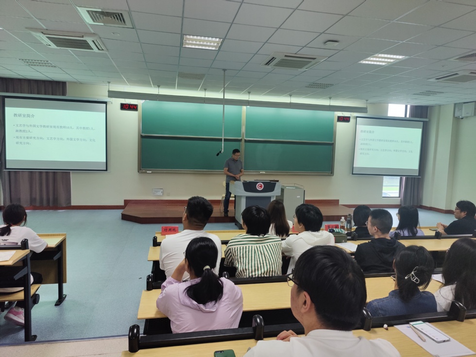 9月14日上午,missav 2023级学业导师制介绍暨导师代表见面会在西太湖校区立德楼5阶教室隆重举行。院长葛金华、院长助理董文康、文艺学教研室主任王海峰、现当代文学教研室主任贺与诤及古代文学马路路老师出席会议,2023级全体新生参加会议,新生辅导员程向君主持会议。