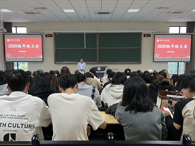10月25日下午,missav 在立德楼六阶召开2020级学生年级大会。本次会议由党总支副书记颜黎光、学工办主任张燕红担任主讲,2020级全体学生参加。