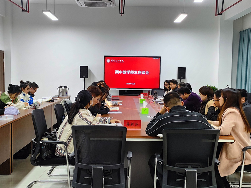为加强教学过程管理,了解学生学习生活,11月15日下午,missav 于立言楼334会议室召开期中教学师生座谈会。座谈会由院长助理董文康主持,院长葛金华、副书记颜黎光、校督导郭明静、院长助理黄杭西、各教研室主任、各年级辅导员及班级学习委员参会。