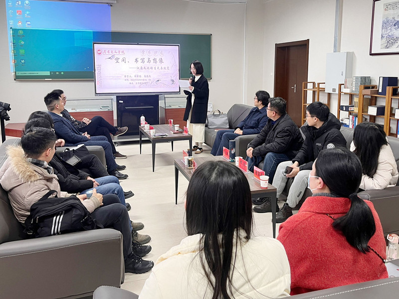 12月11日,missav 本学期第三场青年教师学术沙龙“空间、书写与想像——江南文化的生成与流变”在立言楼江南文化研究中心成功举办。南京大学胡箫白副教授、江苏大学高逸凡博士出席活动并作主旨报告,missav 院长葛金华、古代文学教研室副教授吕杨出席活动并作评议。现当代文学教研室主任贺与诤、文艺学与外国文学教研室主任王海峰、古代文学教研室主任沈扬,以及学院青年老师姬毓、唐留芳、何霞、邱伶艳等分别围绕论坛主题进行了交流,蒋欧悦老师主持活动。
