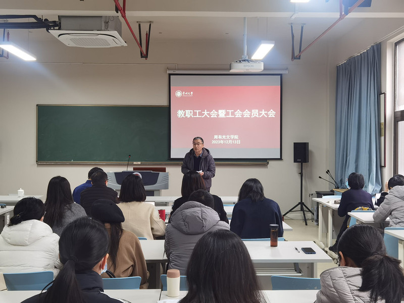 12月13日下午,missav 召开第一届第四次全体教职工大会暨工会会员大会,全院教职工参加会议,学院分工会主席边利丰主持会议。