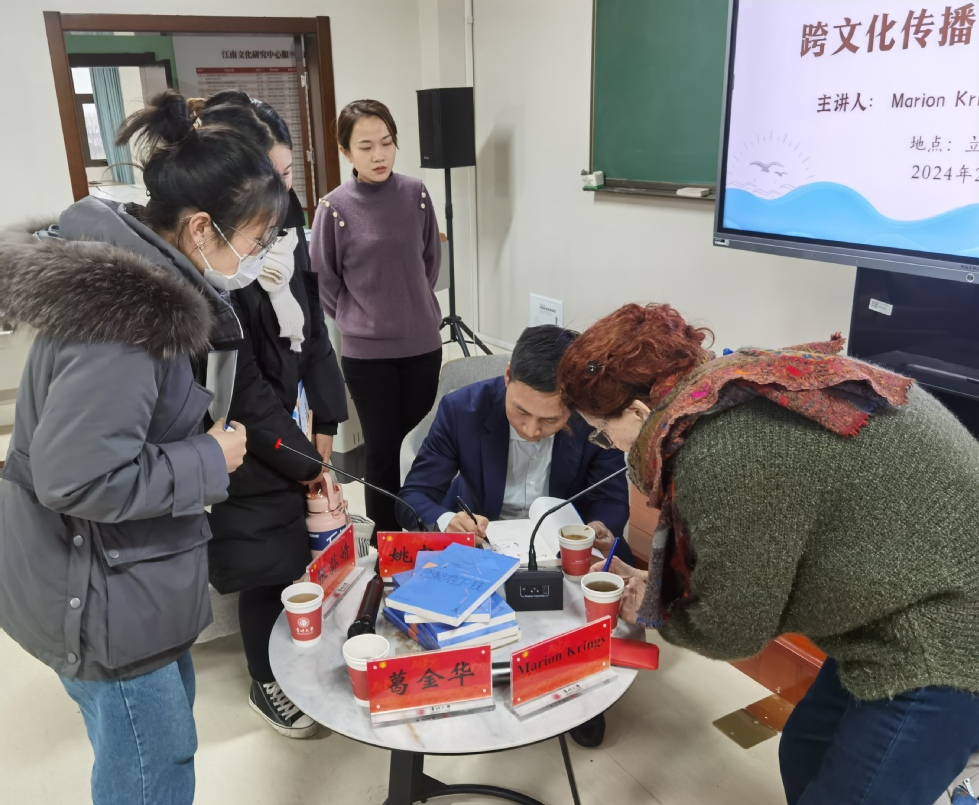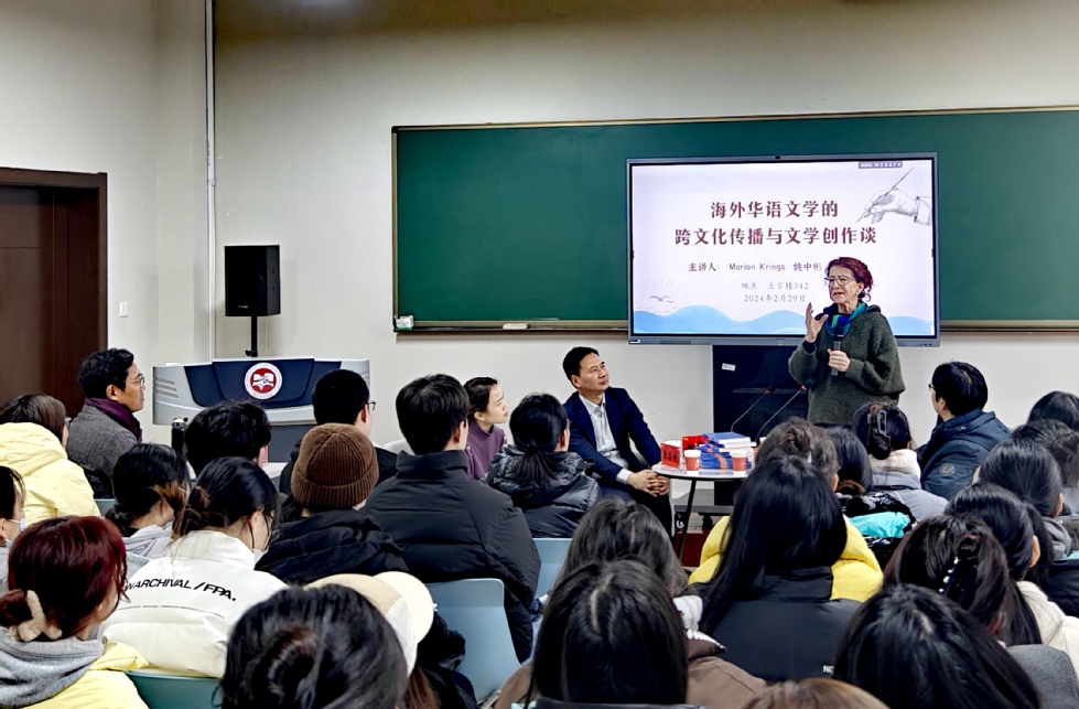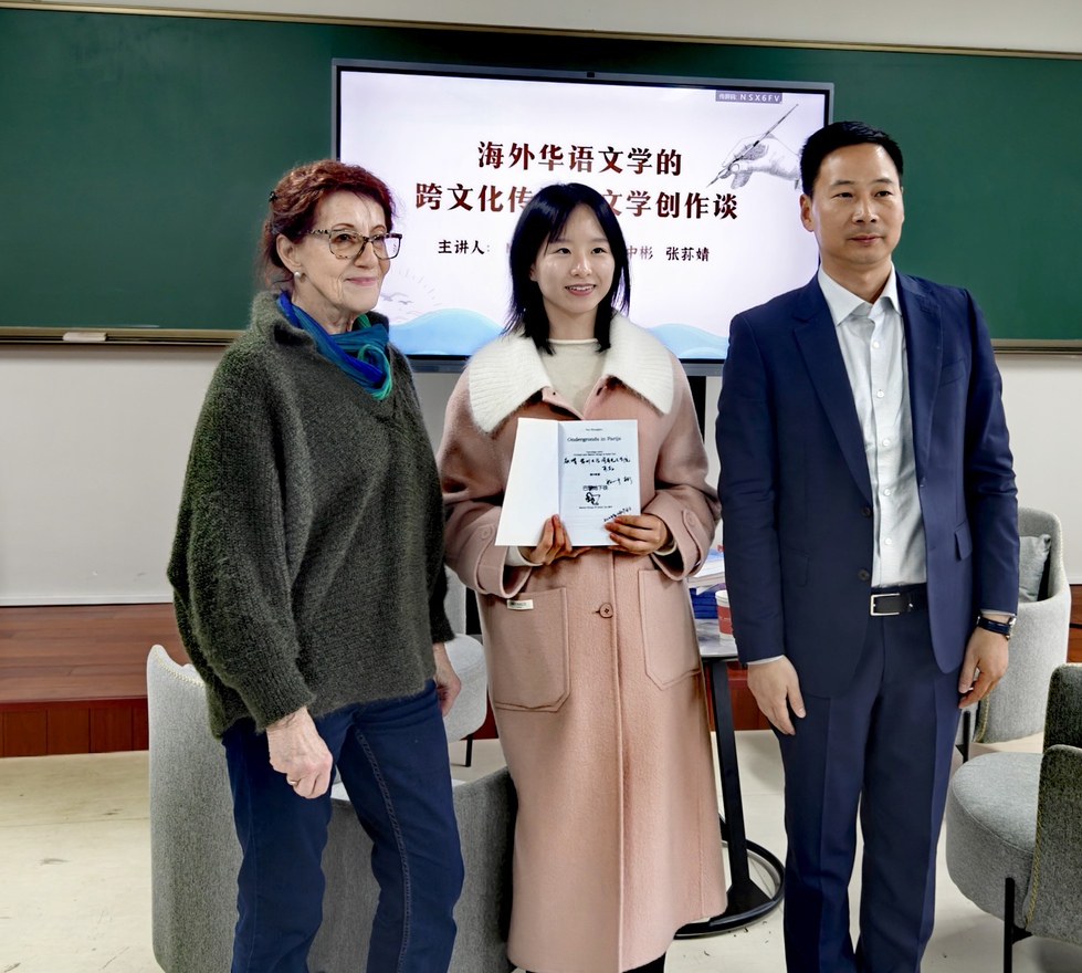 2月29日,我校missav 、跨文化研究院在西太湖校区立言楼342文化教室联合举办“海外华语文学的跨文化传播与文学研讨会”。法国著名翻译家、作家、荷兰鹿特丹大学博士玛瑞安(Marion Krings),《巴黎地下铁》等小说作者、常州籍作家姚中彬,以及南京籍翻译家、作家张荪婧应邀与我校师生分享了文学创作、翻译和传播的故事与经验。我校跨文化研究院院长杜志峰参会,missav 院长葛金华主持研讨会。