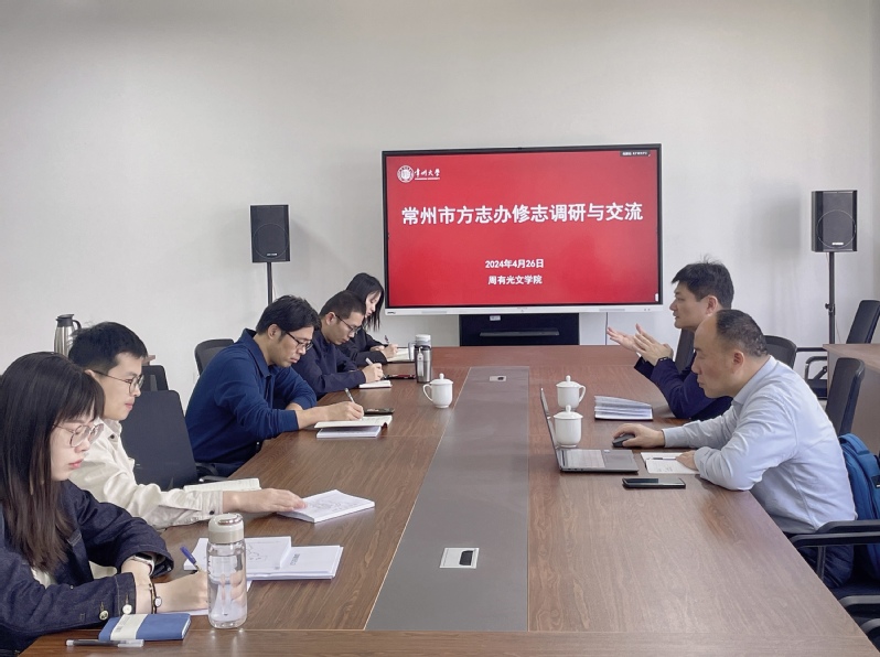 4月26日,常州市地方志办公室地方志工作处处长陈东哲、一级主任科员常云峰一行莅临missav ,在学院334会议室针对missav 主持的《潞城街道志》《戚墅堰街道志》编纂工作进展作了深入调研,并就下一步工作推进作了专项指导。院长葛金华、院长助理黄杭西及编纂团队成员参加了会议。