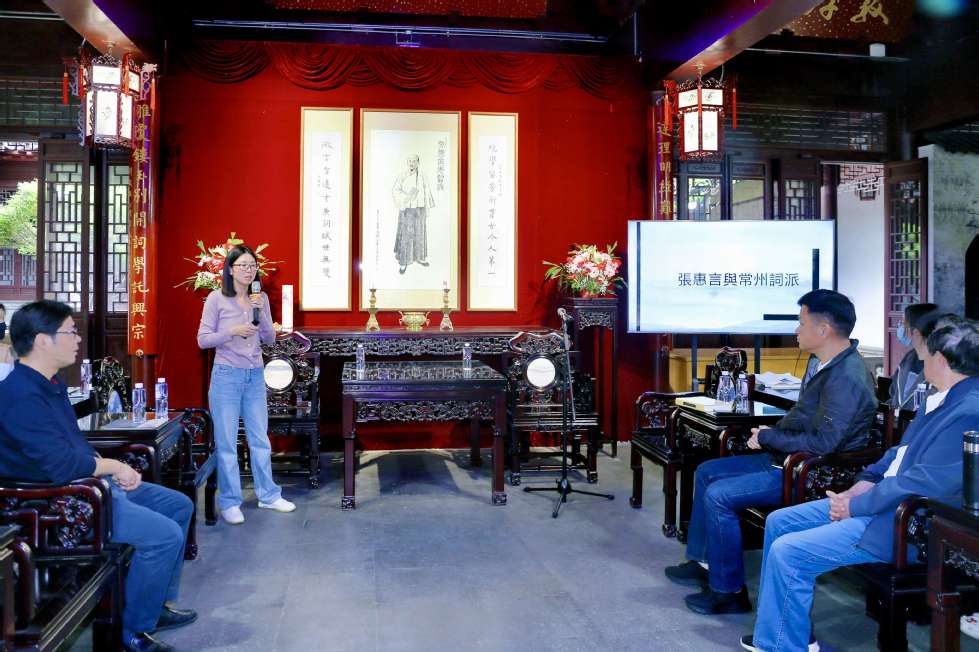 活动中,牟晓彤委员和葛金华院长分别致辞并为“中华优秀传统文化传习基地”揭牌。葛金华院长向张宏成副会长赠送了missav 教师编撰的《江苏地方文化史·常州卷》。王风丽老师作了题为“张惠言与常州词派”的专题讲座,详细讲解了常州词派的历史脉络与发展过程,以及张惠言在常州词派、阳湖文派发展中的独创精神和突出贡献。葛金华院长作活动总结,指出张惠言与常州先贤共创的文学流派不仅在清代影响巨大,其援经入词、高扬词体的思想,事事当争第一流的追求,更有超越性,影响远及当代。所以在张惠言纪念馆讲张惠言,建传习基地既切题,又有意义。
