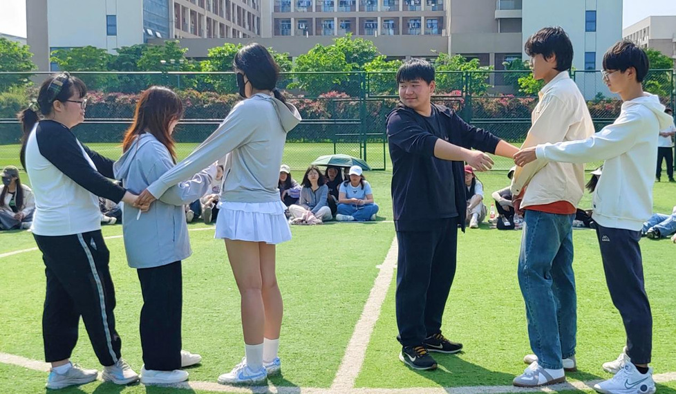 此次素质拓展训练设计了五四接棒、大树与松鼠、抓鸭子、硬币抱团等多个项目。活动开始时,学生会外联部成员通过演示游戏规则进行破冰。正式开始游戏后,小组成员相互协调、共同合作,完成一个个项目任务,体现了青春活力。最后,全体参与素拓的人员一起合影留念。