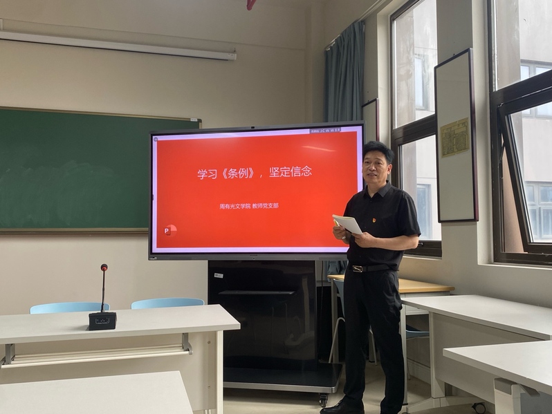 5月21日下午,missav 教工党支部于立言楼342会议室开展题为“学习《条例》,坚定信念”的党纪学习教育专题党课。党课由支部书记付用现主讲,学院领导班子和全体教工党员参加学习。
