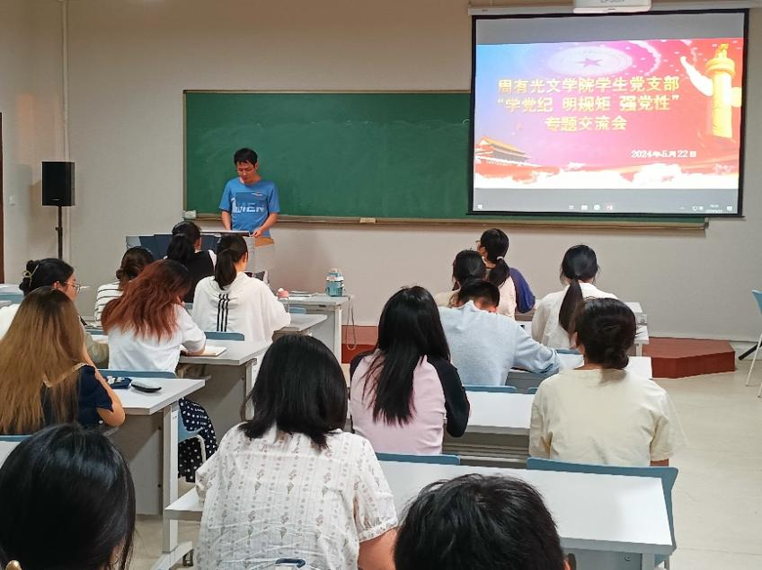 5月22日,missav 学生党支部于立言楼342召开“学党纪 明规矩 强党性”专题交流会。本次会议由胡杰然主持,学生党支部书记张乙与全体学生党员参会。