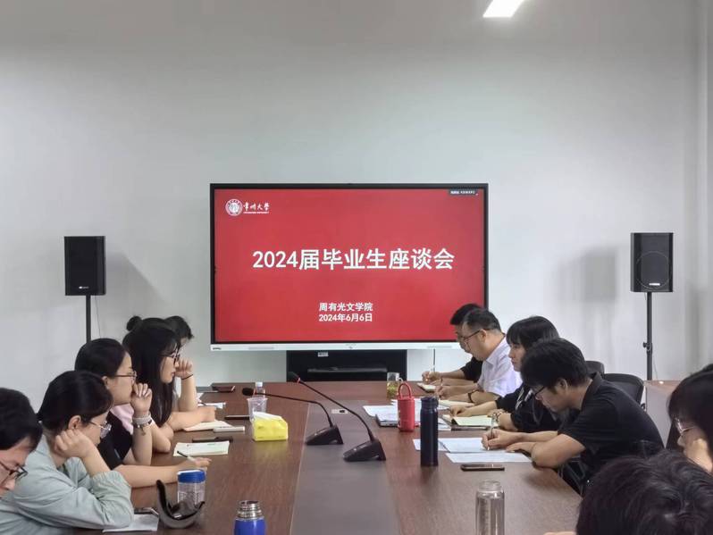 为更好地倾听毕业生心声,不断强化学院管理育人、服务育人的针对性与实效性,提高学院教学管理工作能力,6月6日下午,missav 在立言楼334召开了2024届毕业生座谈会。院长葛金华、党总支副书记颜黎光、中文系主任贺与诤、院长助理董文康、辅导员程向君及毕业生代表参加会议,会议由颜黎光主持。