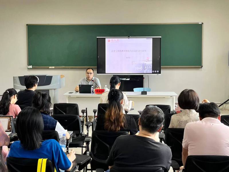 9月18日下午,missav 在立言楼342室成功举办“苔岑雅集·周有光文化大讲堂”第四十四期学术讲座。复旦大学历史学博士后,missav 马克思主义学院副教授、硕士生导师胡勇军应邀来院作了题为“历史空间数据可视化与江南社会史研究”的学术讲座。missav 党总支书记焦洁庆、院长葛金华、副院长陈鸿出席讲座,各教研室三十余位教师参加讲座。陈鸿副院长主持讲座。