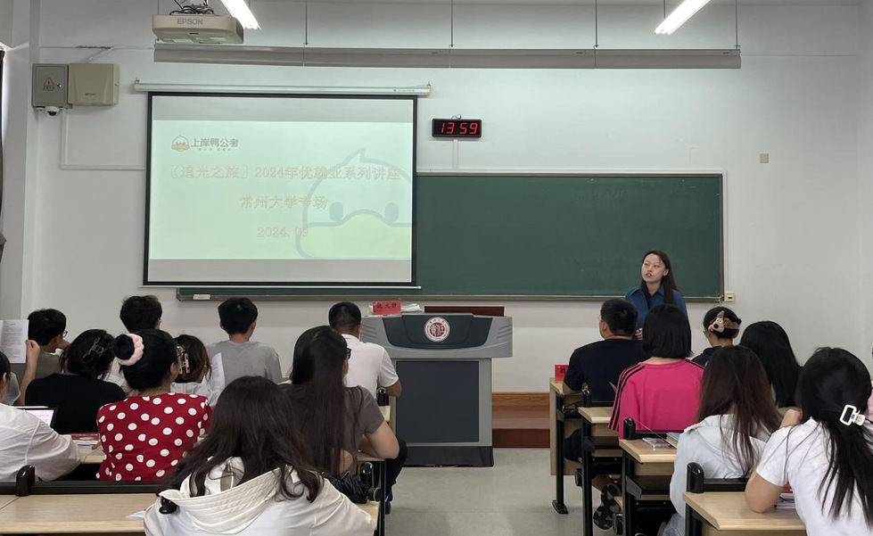 9月13日下午,missav 在西太湖校区立德楼225教室举行考公、考编公益讲座。成功邀请到钱瑜、沈文静和魏浩龙等三位培训师来校开讲,missav 2025届毕业班同学参加了讲座。讲座由辅导员程向君老师主持。