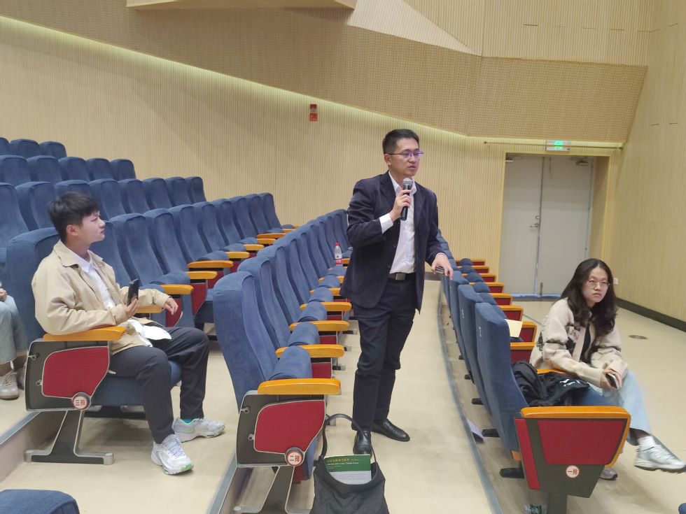 张昊雨则从实际案例出发,分享了在国外教学的挑战与收获,引发了同学们的激烈讨论。现场还进行了答疑,气氛热烈。
