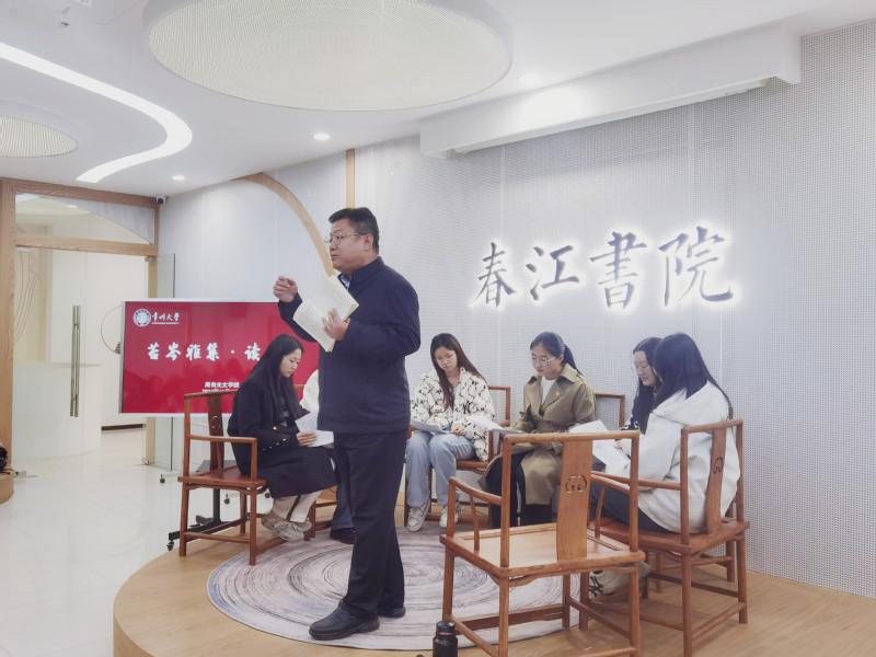 随后,师生围坐在春江书院的讲台前,聆听吕杨老师和六位学生党员带来的苔岑雅集·读书分享会《明史·海瑞传》。在吕老师的悉心引导下,学生们结合自己的阅读感悟,围绕海瑞清正廉洁、勇于担当的高尚品质展开讨论。同学们纷纷表示,海瑞的廉洁精神不仅是历史的瑰宝,更是新时代党员应当坚守的道德底线与精神追求。现场氛围热烈,师生们深入开展交流,不仅加深了对廉洁文化的理解,更激发了传承与发扬廉洁精神的决心。