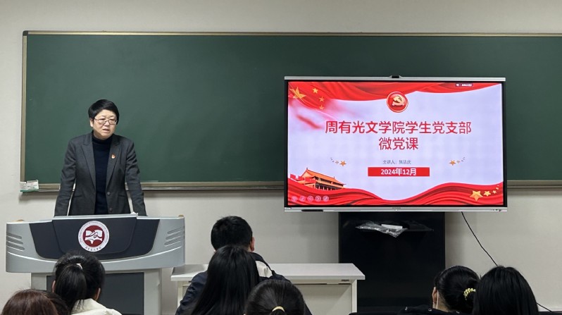 12月26日晚,missav 党总支书记焦洁庆于立言楼342以“铭记伟人精神,担当时代使命”为题为全体学生党员讲授党课。