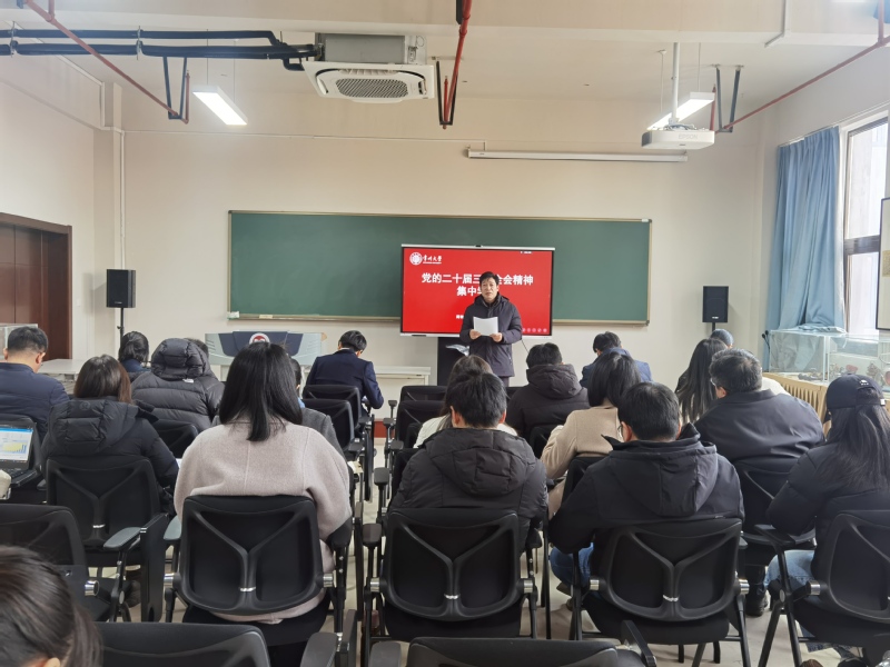 1月8日下午,missav 教工支部举办党的二十届三中全会精神集中学习研讨会,学院全体领导班子与教工党员参会,会议由支部书记付用现主持。