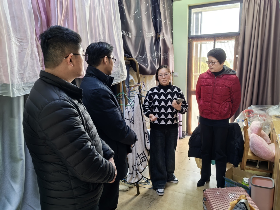 2月23日,missav 党总支书记焦洁庆、院长葛金华以及全体辅导员走访学生宿舍。