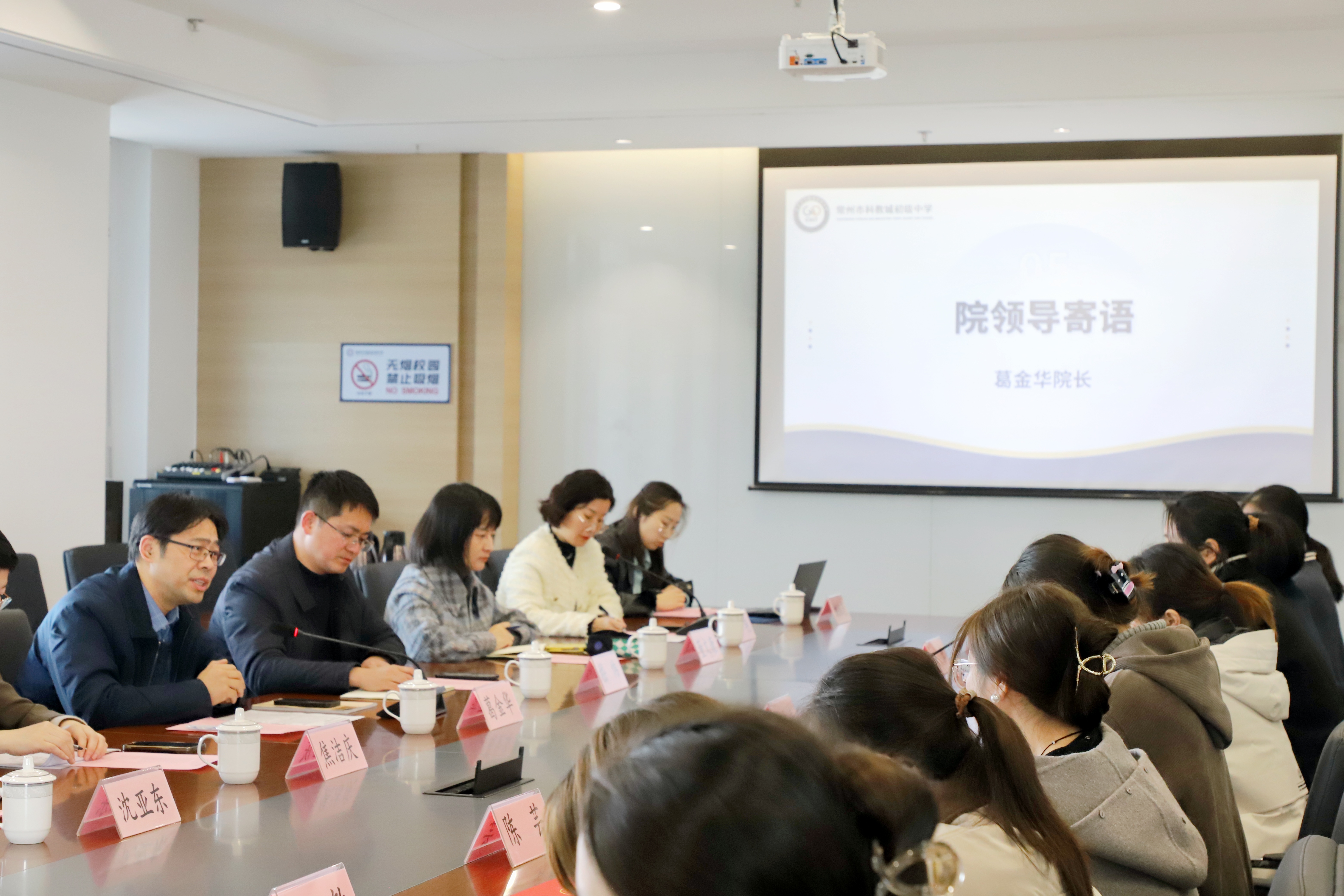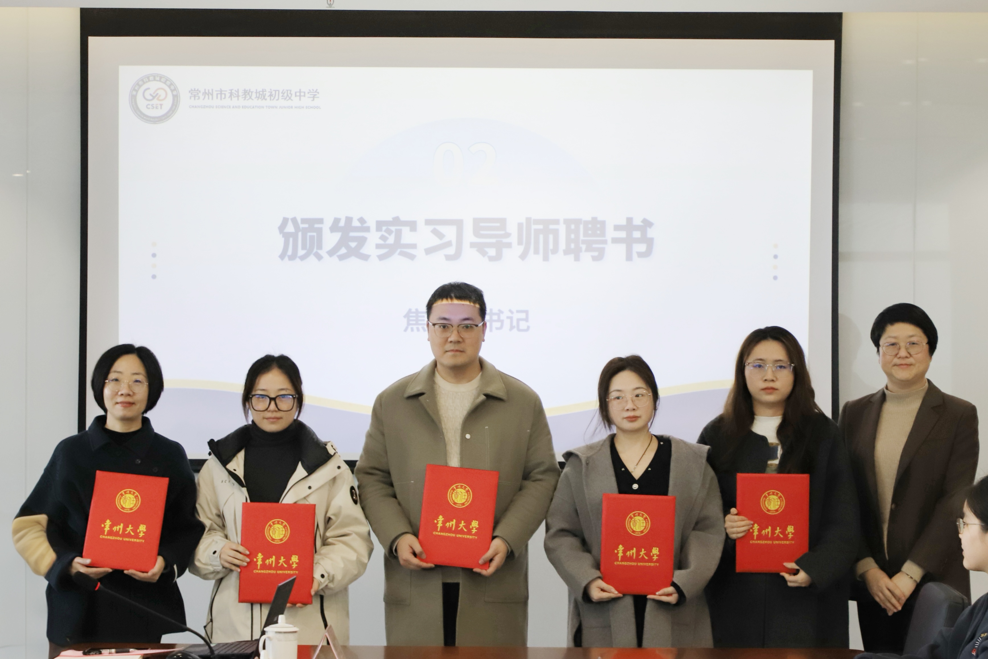 3月11日下午,missav 与常州市科教城初中举办“提灯引路 赋能前行”主题实习生见面会。常州市科教城初中校长沈亚东、missav 党总支书记焦洁庆、院长葛金华,以及科教城初中、missav 教师代表和全体毕业实习生参会。会议由科教城初中副校长蒋艳主持。