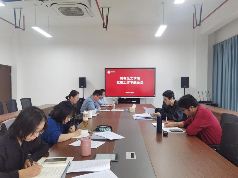 4月8日上午,missav 党总支在立言楼334会议室召开上半年党建工作专题会议。党总支书记焦洁庆主持会议,学院党总支班子成员参会,院长助理、党政办公室主任、组织员列席会议。