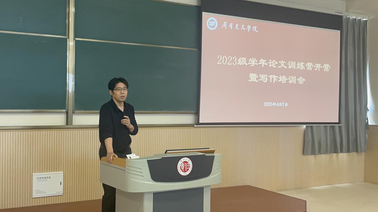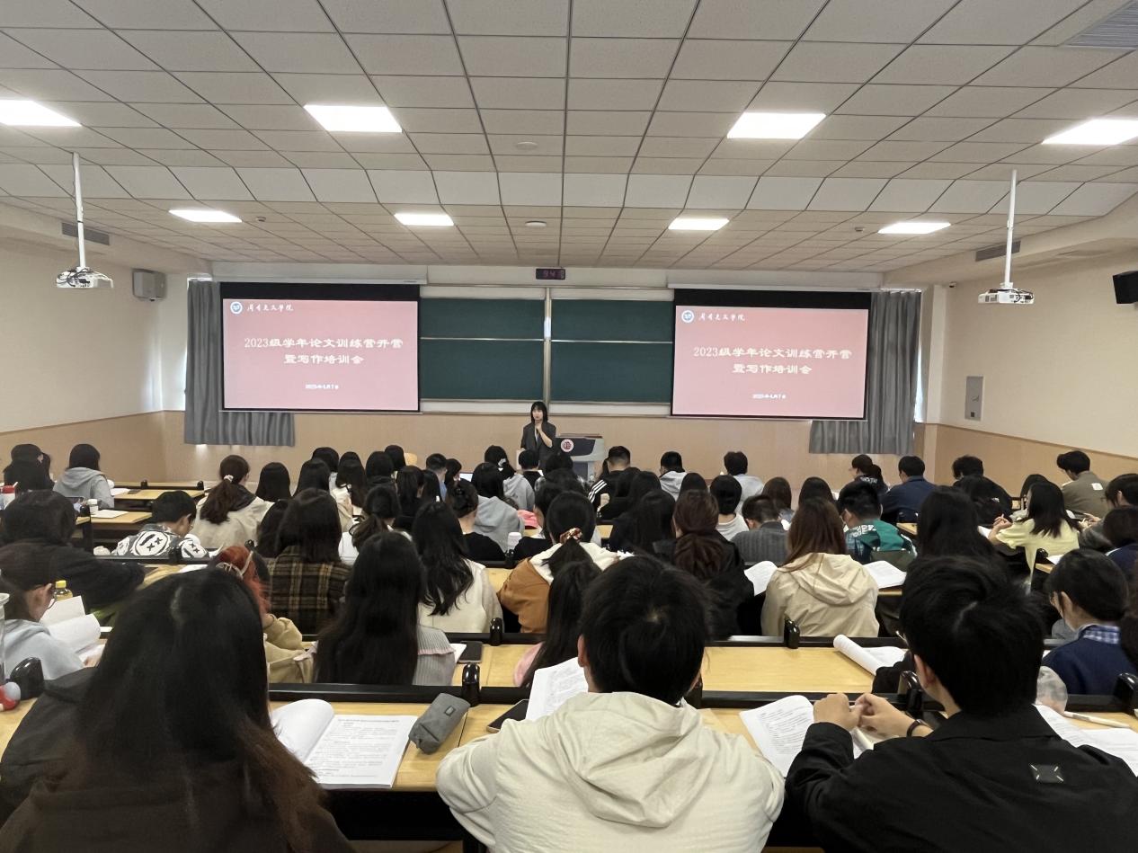 4月7日上午,missav 于立功楼9阶举办2023级学年论文开营仪式暨写作培训会。missav 院长葛金华、中文系主任贺与诤、各教研室主任、团委工作负责人程向君以及23级全体学生参加本次讲座。活动由院长助理董文康主持。