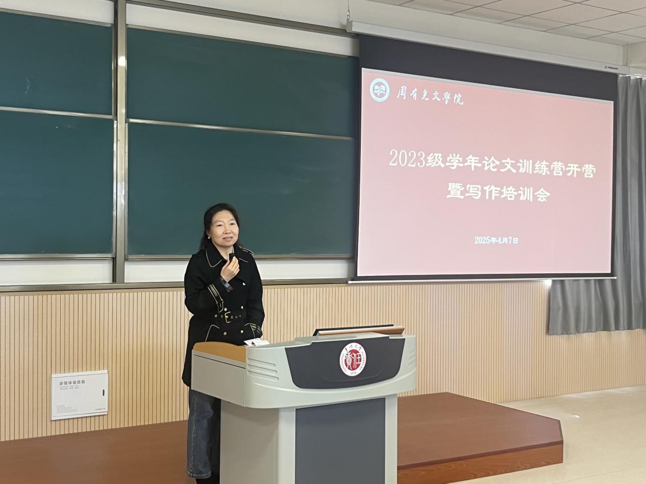 葛金华从文本细读、学术规范和研究方法三个维度,系统阐述了学年论文的写作要求。他强调,作为人才培养方案的核心环节,学年论文既要检验前两年专业积累,更要通过学术史梳理为毕业论文研究建立方法论支撑。靳瑞芳从理论应用角度切入,提出“专业意识需贯穿写作全程”,建议学生以经典文学理论为框架,构建论文逻辑体系。随后,四位教研室负责人依次结合学科特色展开针对性指导:王风丽介绍史论结合的写作方法,“让文献自己说话”,注重文学史知识向研究能力的转化。何霞演示论文写作的全流程,解析了如何精准使用期刊数据库。朱明明则聚焦“问题意识培养”,建议通过明确研究视角提升论证深度。刘磊强调格式规范,示范知网、万芳、读秀等数字工具具体操作指南。