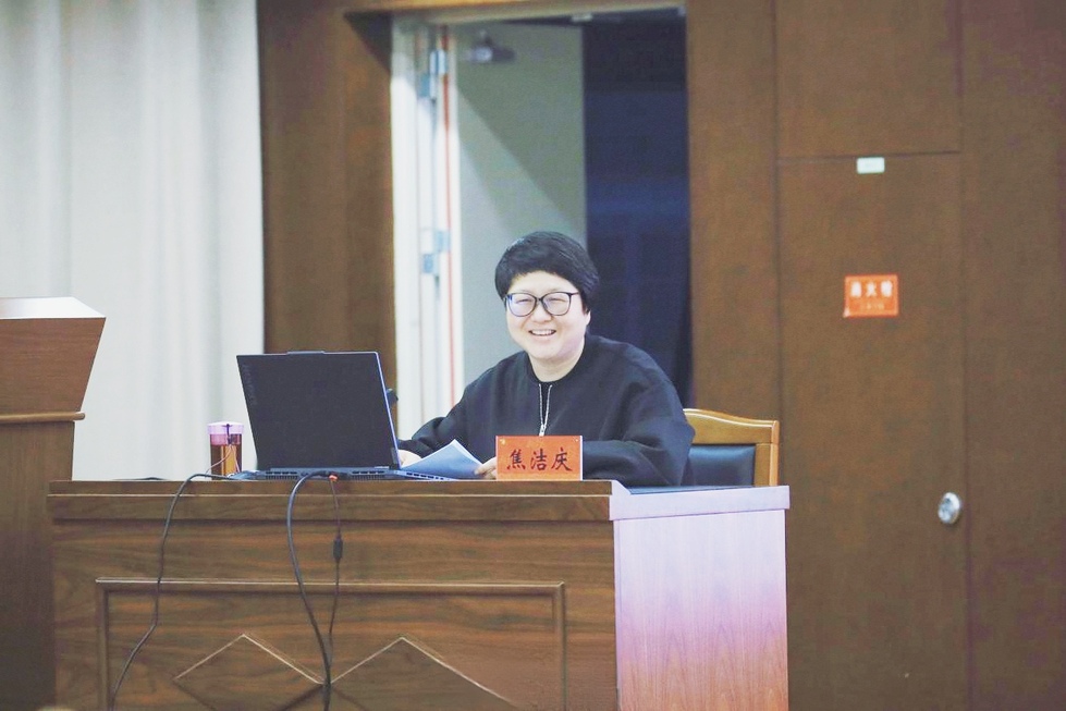 焦洁庆以“什么是理想信念”为切入点,从定义层面深入阐述了理想信念的内涵与作用。她强调,理想信念是共产党人精神上的“钙”,对党员而言,就如同钙对人体一样,是维持精神健康与强大的关键要素,缺少了它,精神就会“缺钙”,人就容易得“软骨病”。她从理想信念是共产党人的“安身立命之本、第一标准、经受考验的精神支柱”三个关键维度,深度剖析了精神之“钙”的不可或缺性。列举了一些因丧失理想信念而误入歧途的反面案例,让大家清晰认识到缺失理想信念的严重后果。她指出,我国正面临着国内外多重挑战,加上信息洪流对年轻人的价值观形成构成诸多挑战,在当下复杂多变的时代背景下,青年人补足“精神之‘钙’”迫在眉睫。