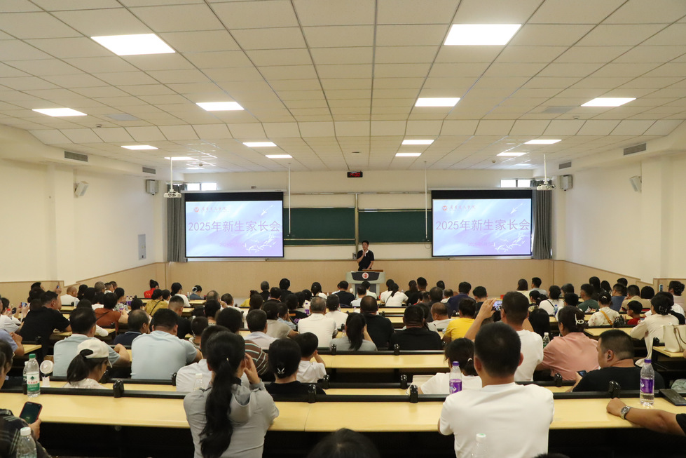 9月7日下午,missav 在西太湖校区立功楼二阶举办2025年新生家长见面会。院党委书记焦洁庆、院长葛金华、副院长陈鸿、院长助理董文康、电影工作室主任赵雅婷、学工办主任张燕红、团委副书记程向君,全体新生班主任以及新生家长共同参会。会议由副书记嵇炜主持。