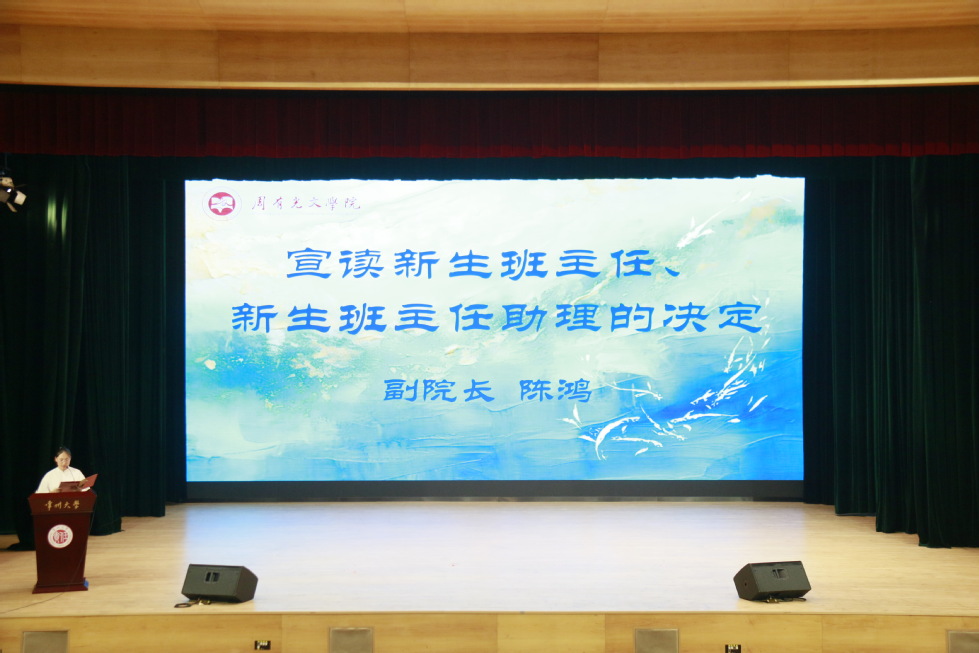 焦洁庆书记为新生班主任颁发聘书,嵇炜副书记为新生班主任助理颁发聘书,院长助理董文康为本科生导师代表颁发聘书。