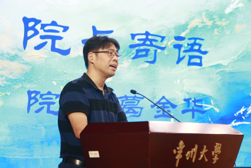 院长葛金华以“认识并改变自己,争做时代的不可替代者”为题,代表学院寄语新生。寄语中,他首先回顾了近三年来院长寄语的主要内容,认为“讲话也是讲话史”,过去所讲现在依旧有效,所以要不断回顾、传承,这既是一种能力,也是一种文化。之后,他以英国诗人华兹华斯诗作《我独自漫游,像一朵微云》的诗名中译为例,从跨文化传播的角度阐释了“诗歌就是从一种语言翻译成另一种语言所丢失的东西”这一理论的具体内涵,指出当代人机合作早已能从深挖诗歌所具有的超越时代的价值角度作更优于既有翻译的工作了。由此,结合技术快速迭代、机器替代人工的时代现状,他希望大家能够学会预判时代的方向,勇于突破旧视域、敢于走入新领域,在真实的创新创造中成为“不可替代者”。他希望本科生首先要有媒介自觉的品质和素养,让媒介成为人的延伸和工具,然后再利用媒介和工具进行高效学习和自我培养。他鼓励专转本同学既要用好专科阶段所学知识,尽可能发挥交叉学科优势,又要结合自己“两次高考”经历,通过大量阅读改变专业学习流于浮表的缺陷,在技能、专业、体验和思想的多重加持下使自身变得足够强大。他希望研究生同学摆脱功利心态,学会生产性学习,在充分认识自己的基础上自我鞭策,在持续的专业学习、经典阅读和学术研究中,不断改变和突破自我。最后,他希望大家都能勇于承认自己的无知,敢于针对真实问题进行知识重组、方法重设、思想革新,如同柳宗元《捕蛇者说》中的善捕蛇者一般,从学会自我学习的角度,修炼不可替代性和高技术含量,最终学有所成、一生有光。