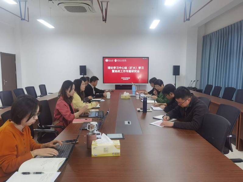 10月23日上午,missav 党委在立言楼334召开理论学习中心组(扩大)学习暨统一战线工作专题会议。会议由学院党委书记焦洁庆主持,学院党委委员、院长助理,党政办主任、组织员,学工办主任、辅导员参加会议。