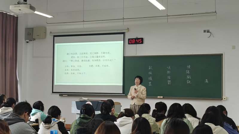 周刚随堂听取了薛欣欣老师讲授的《古代汉语》课程。薛欣欣老师在授课过程中,注重语言知识的系统讲解与文本细读相结合,通过启发引导和互动交流,营造了积极专注的课堂氛围,展现出良好的教学组织能力与专业素养。